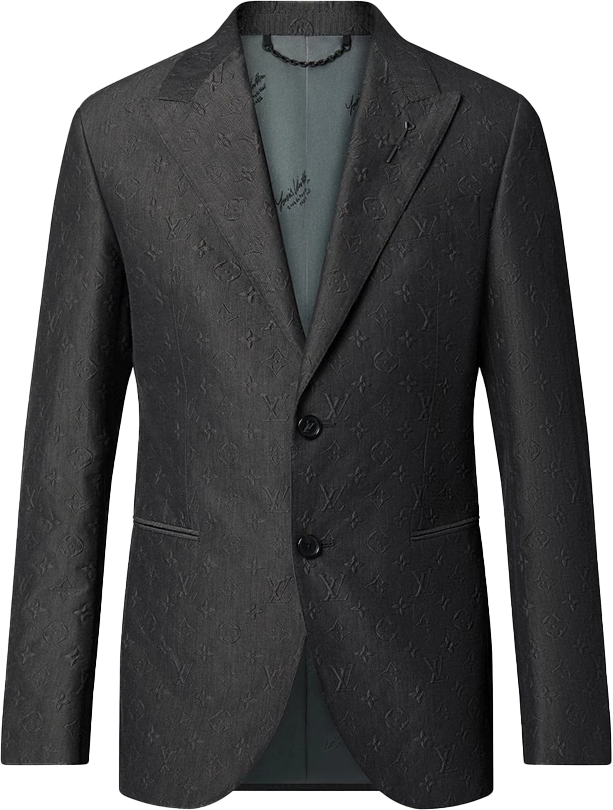 This classic tailored jacket has a refined look with its peak lapels and piped pockets. It is made from a technical organic cotton fabric featuring an allover debossed Monogram jacquard with Louis Vuitton signature fabric lining. Details include a engraved pin on the peak lapel and discreet tonal LV stitching on the first button.